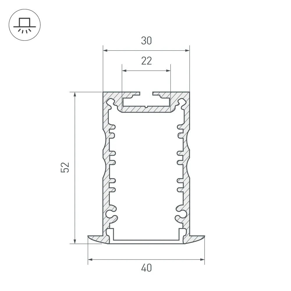 Алюминиевый профиль длина 2м в комплекте с матовым экраном. Материал экрана - PC, UV-защитный, ударопрочный. Размеры 52х30 (39.6 внешний) мм.