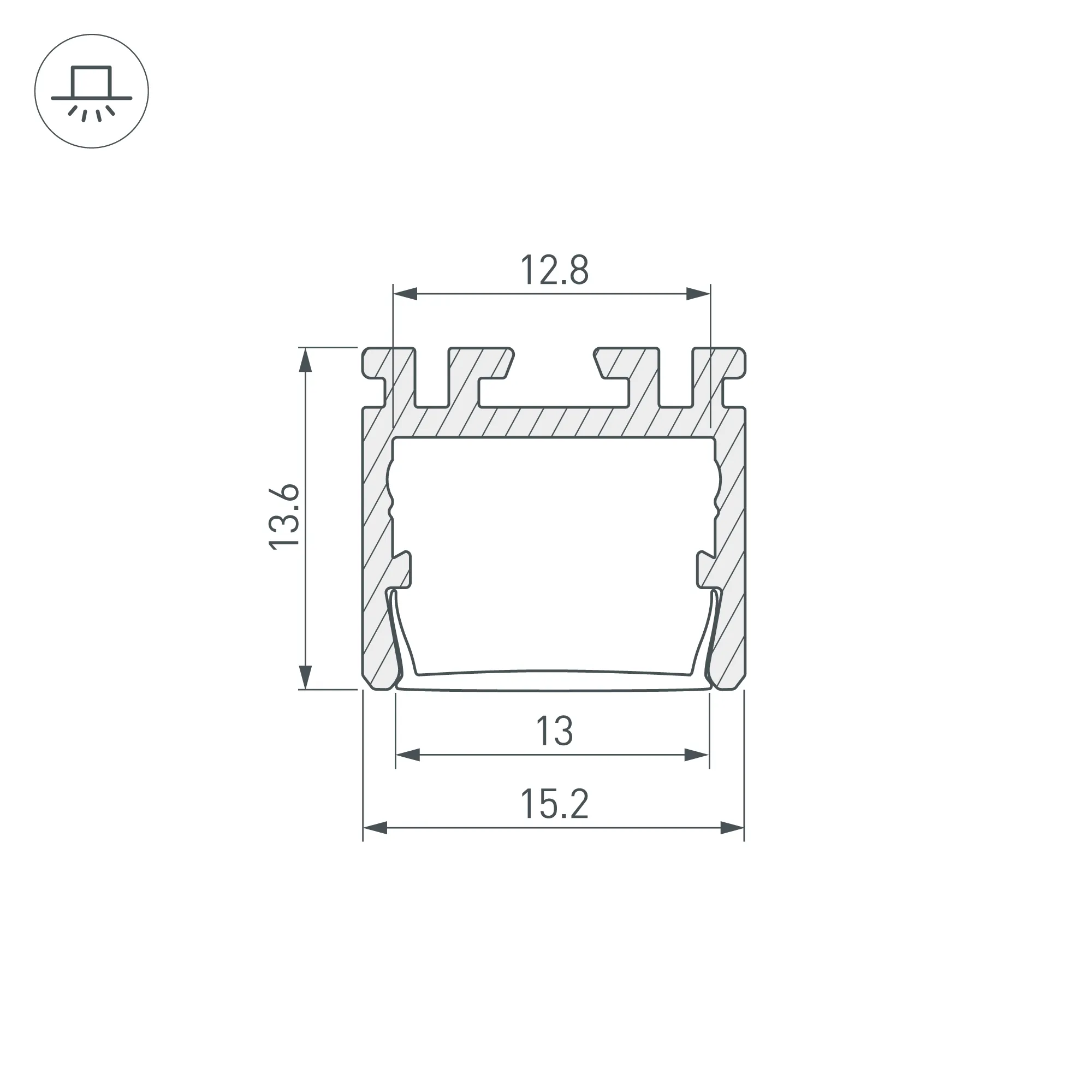 Алюминиевый анодированный профиль для светодиодных лент и линеек, встраиваемый в профиль TEK-PDS-D. Скрытой установки, фланцы закрашиваются. Для создания световых полос без видимых алюминиевых частей. Габаритные размеры (L×W×H): 2000x15,2x13,6 мм. Ширина площадки для ленты 12,8 мм. Экраны, заглушки и другие аксессуары приобретаются отдельно. Цена за 1 метр.