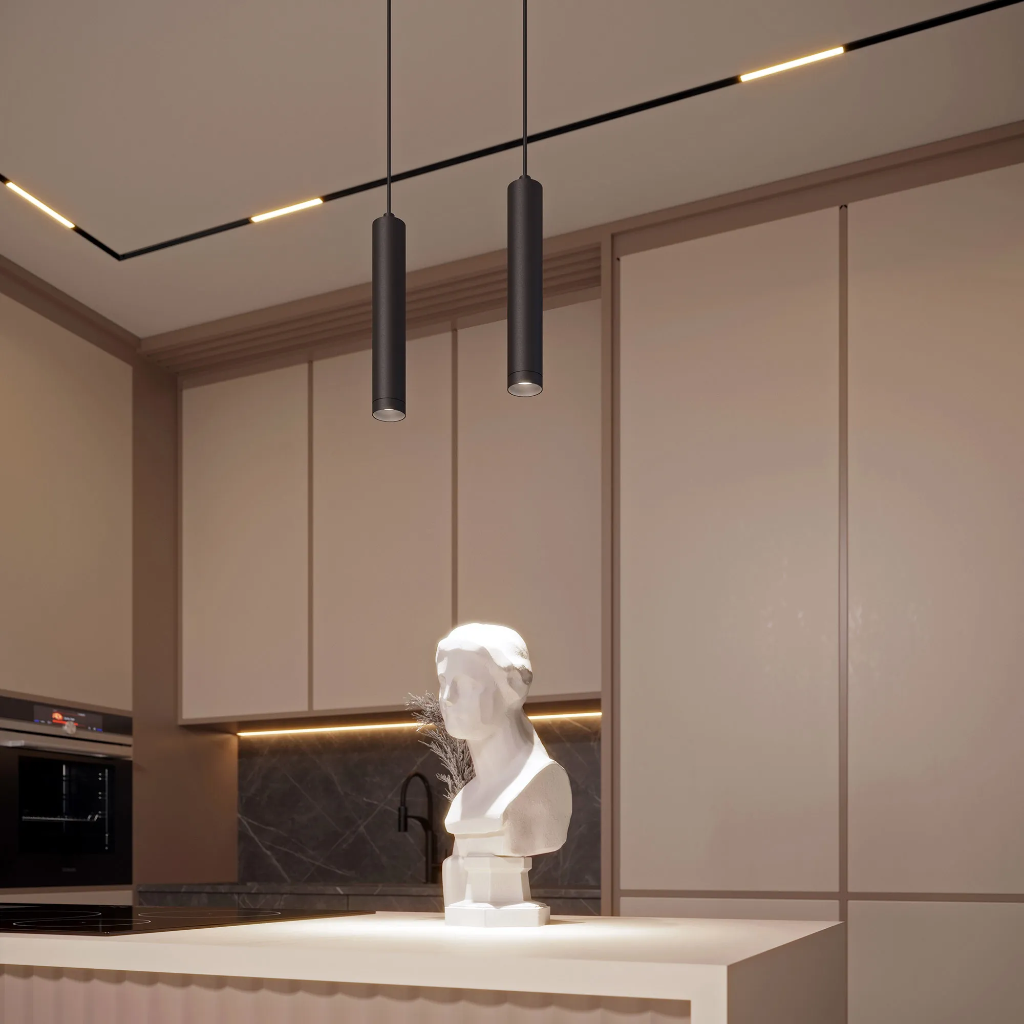 Светильник для магнитных треков MAG-ORIENT шириной 26 мм. Мощность 12 Вт, св. поток 895 лм, 75 лм/Вт, теплый 3000 K, CRI>90, угол 24°, напряжение питания 48 В. Черный цилиндрический корпус из металл, степень защиты IP20. Размер: длина 204 мм, ширина 45 мм, высота 1518 мм, высота подвеса 1250мм. Размер светоизлучающего модуля: 45*250 мм. Монтаж на трек MAG-ORIENT. Пульсация <1%. UGR<16. Подвес регулируется.