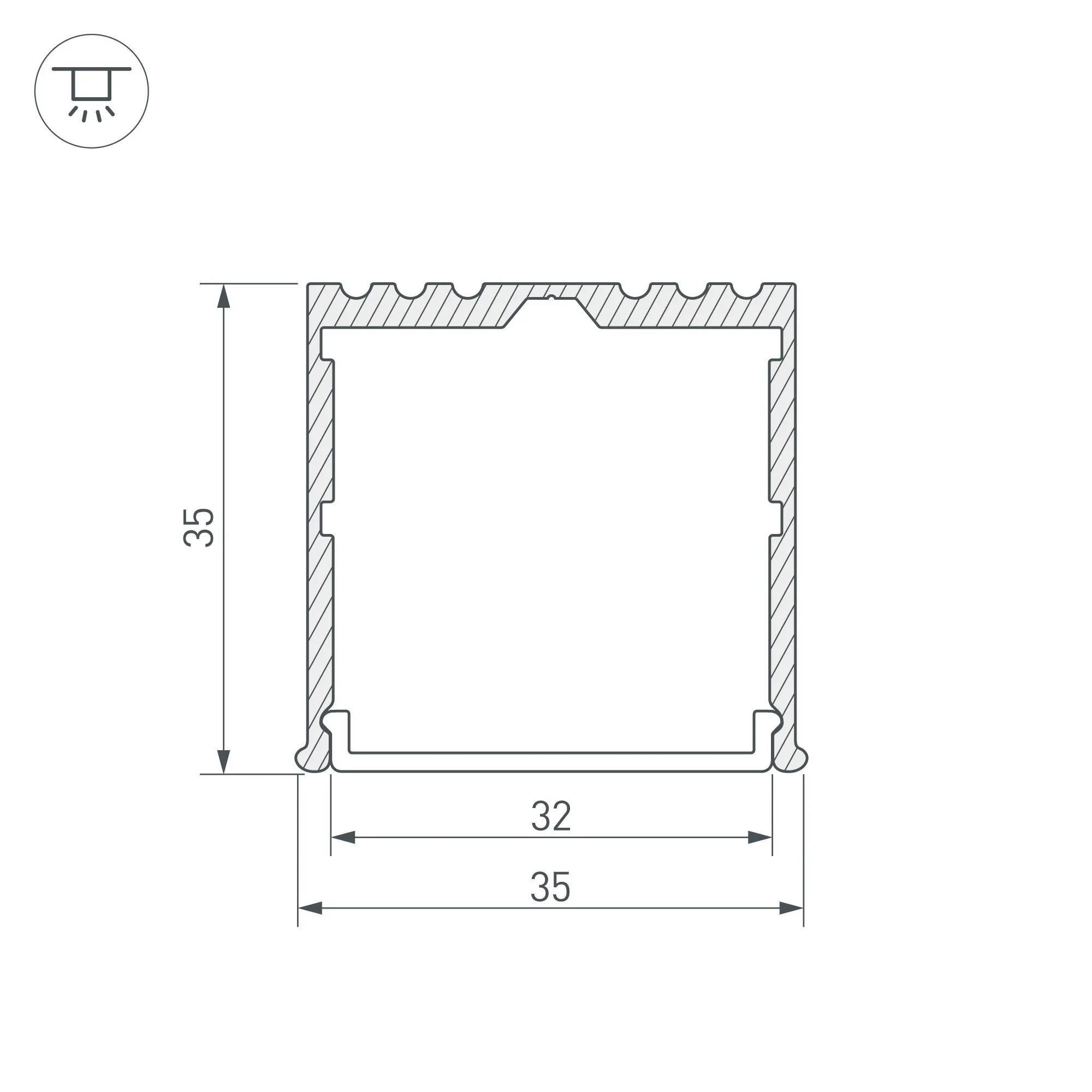 Алюминиевый анодированный накладной профиль для светодиодных лент и линеек. Габаритные размеры (L×W×H): 3000x35x35 мм. Ширина площадки для ленты 32 мм. Экраны, заглушки и другие аксессуары приобретаются отдельно. Цена за 1 метр.