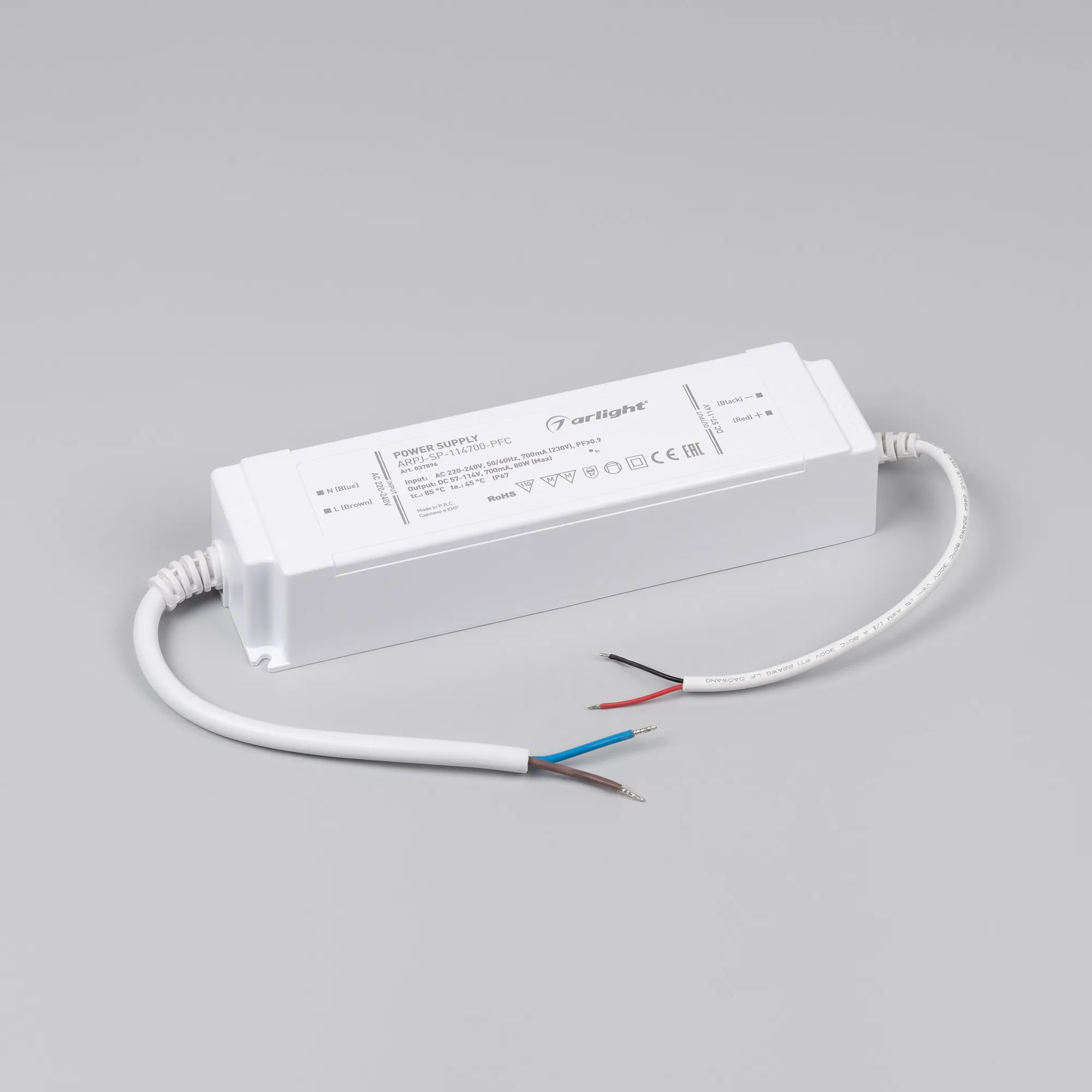 В магазине Arled Market Вы можете купить "Блок питания ARPJ-SP-114700-PFC (80W, 57-114V, 0.7A) (Arlight, IP67 Пластик, 5 лет)"