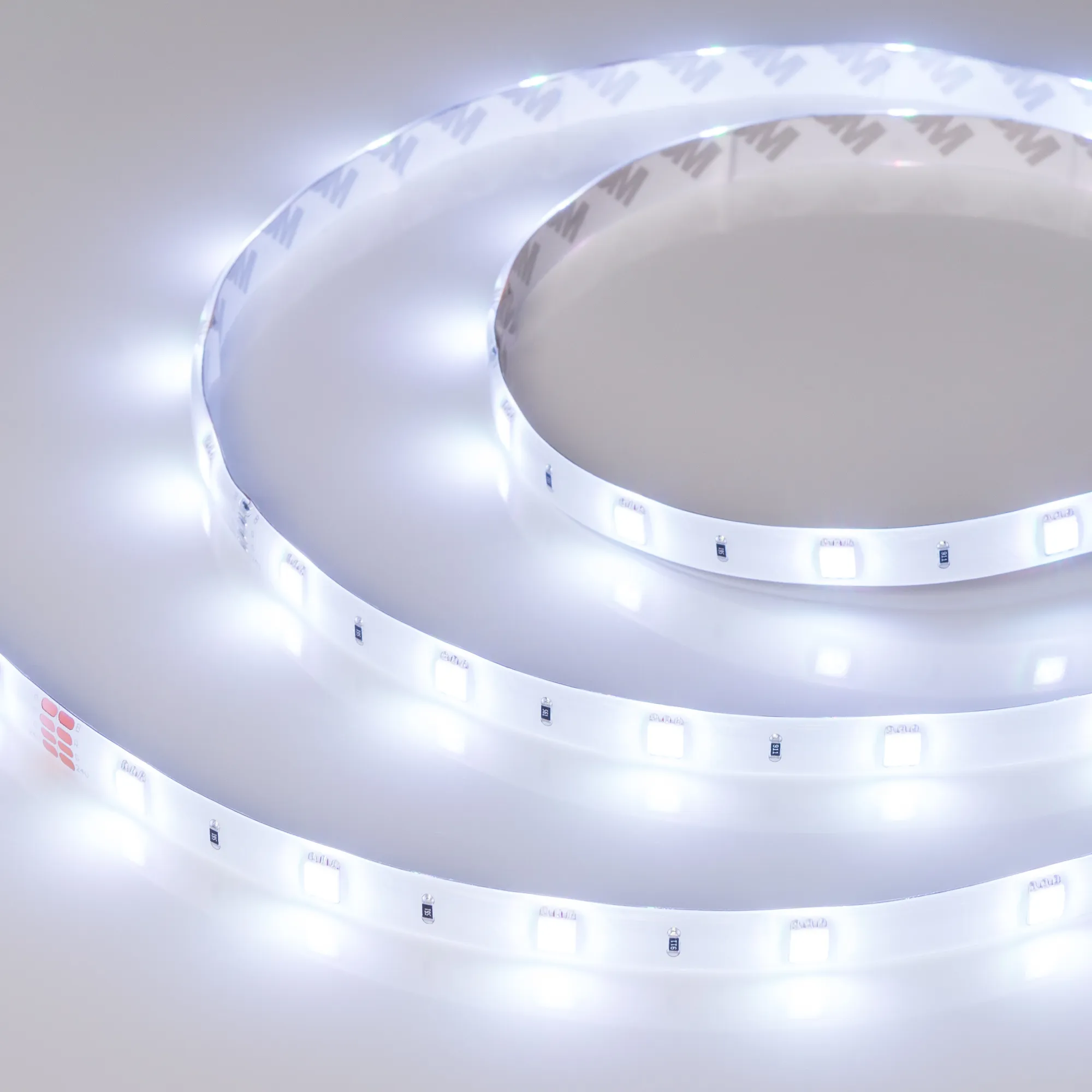 Герметичная лента IP65 (силиконовое покрытие), светодиоды smd 5060, 30шт/м (150шт на 5м), белая плата 10мм, скотч 3М. Цвет Мультицвет R/G/B. Питание 24V, мощность 7.2 Вт/м (36 Вт на 5м), угол 120°. Размеры 5000х10x2.7мм. Мин.отрезок 166.7мм, 5 светодиодов. Цена за 1м.