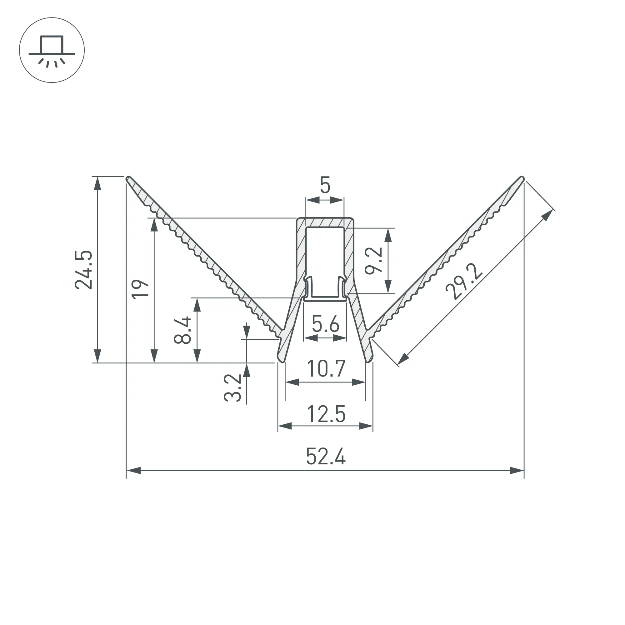 Алюминиевый анодированный угловой профиль для светодиодных лент и линеек, под строительную отделку. Фиксируется при помощи строительной смеси. Декоративная контурная подсветка внешних углов стен и конструкций. Габаритные размеры (L×W×H): 2000x52,4x24,5 мм. Ширина площадки для ленты 5 мм. Экраны, заглушки и другие аксессуары приобретаются отдельно. Цена за 1 метр.