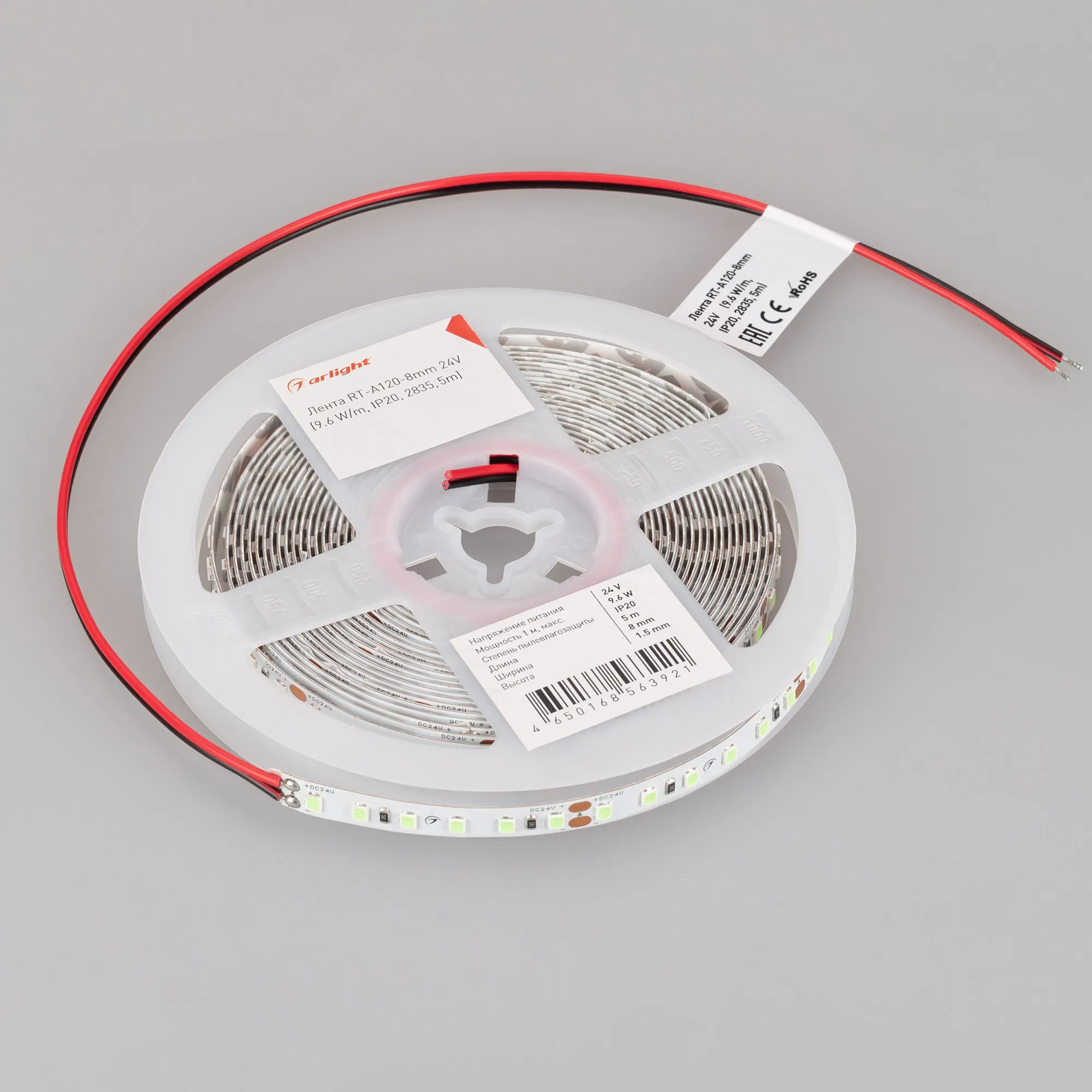 В магазине Arled Market Вы можете купить "Лента светодиодная RT-A120-8mm 24V Mint Blue (9.6 W/m, IP20, 5m) (Arlight, -)"