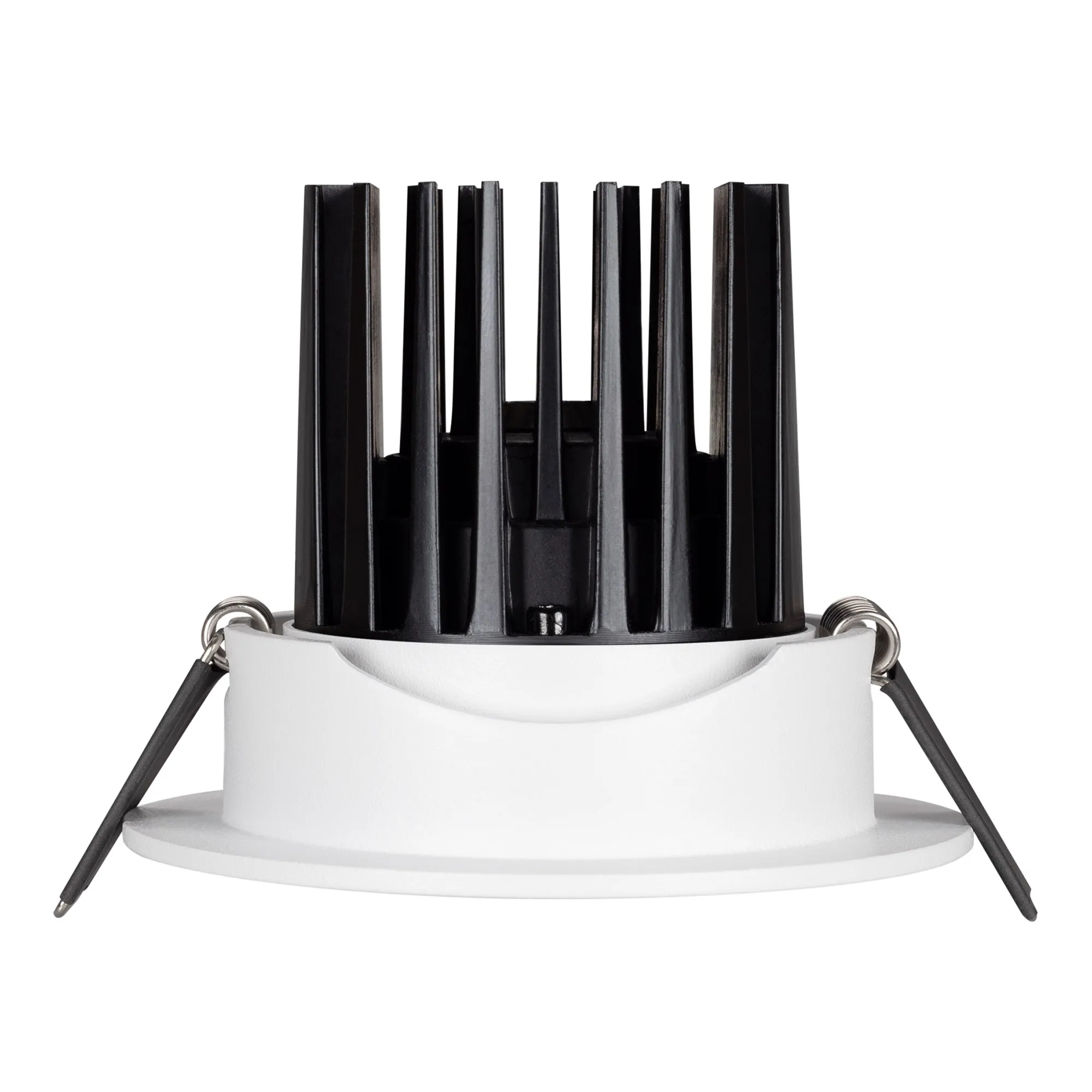 Встраиваемый поворотный светильник даунлайт. Мощность 10 Вт, св. поток 910 лм, 90 лм/Вт, дневной 4000 K, CRI>90, угол 60°, напряжение питания 230 В. Белый круглый корпус из алюминия, экран PMMA, степень защиты IP54. Размер: диаметр 94 мм, высота 75 мм. Монтаж встраиваемый, установочное отверстие: диаметр 77 мм. Драйвер IP54, 20-40 В, 250 мА, пульсация <1%.