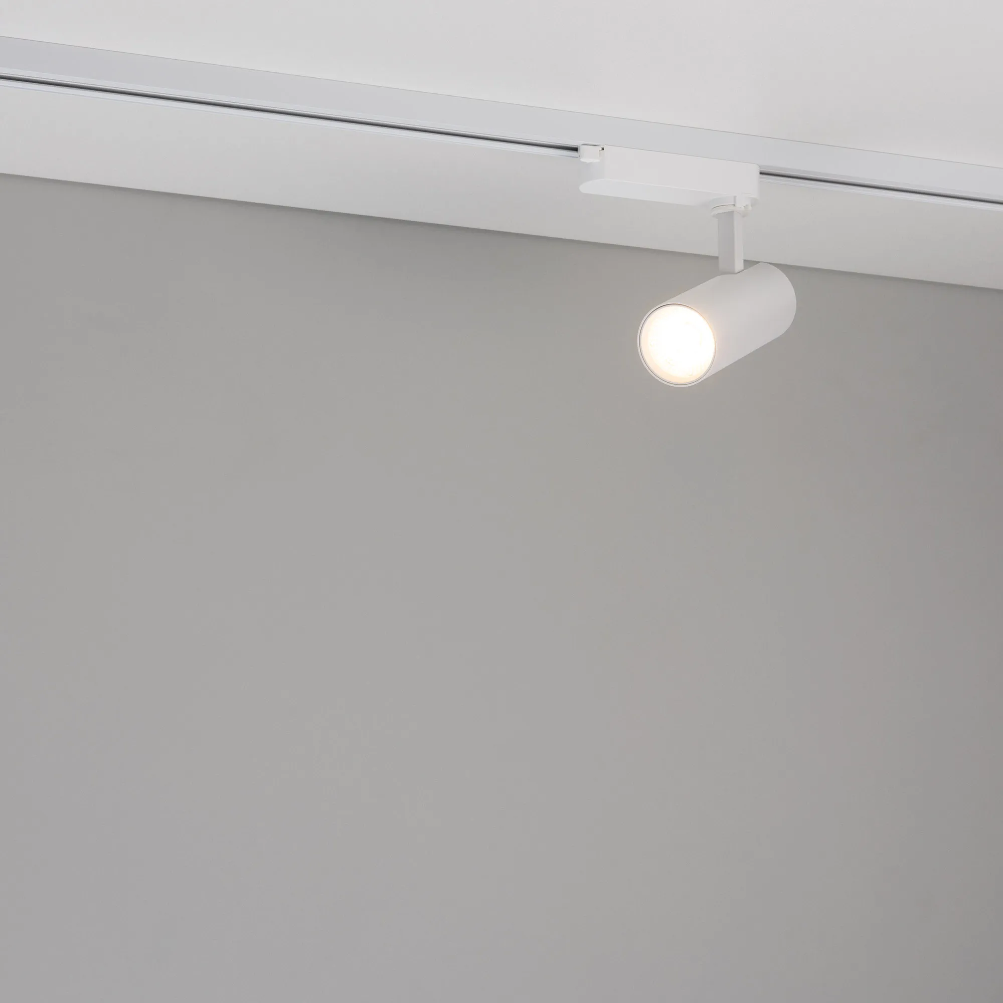 Светильник для треков/шин 2 провода. Мощность 15 Вт, св. поток без решетки honeycomb 1500 лм, 100 лм/Вт, с решеткой honeycomb 990 лм, 66 лм/Вт, тёплый 3000 K, CRI>90, угол 55°, напряжение питания 230 В. Белый круглый корпус из алюминия, материал линзы PMMA, степень защиты IP20. Размер: диаметр 60 мм, длина световой части 141 мм. Монтаж на трек 1-фазный. Драйвер встроенный 350 мА 25-40 В, пульсация <5%.
