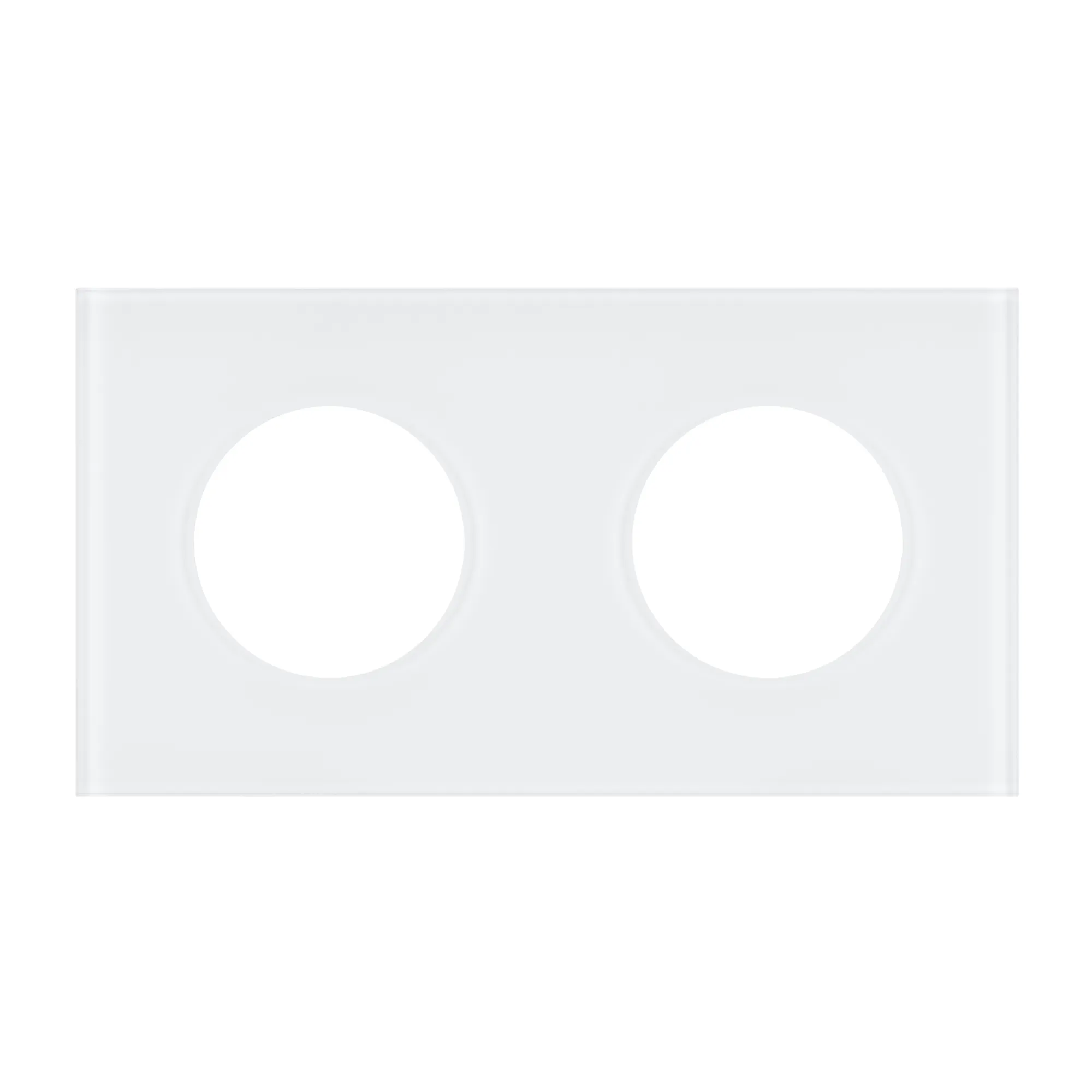 Рамка стеклянная на 2 поста, под встраиваемый механизм. Вырез под функциональную часть круг. Цвет - белый. Ориентации монтажа - горизонтальная.