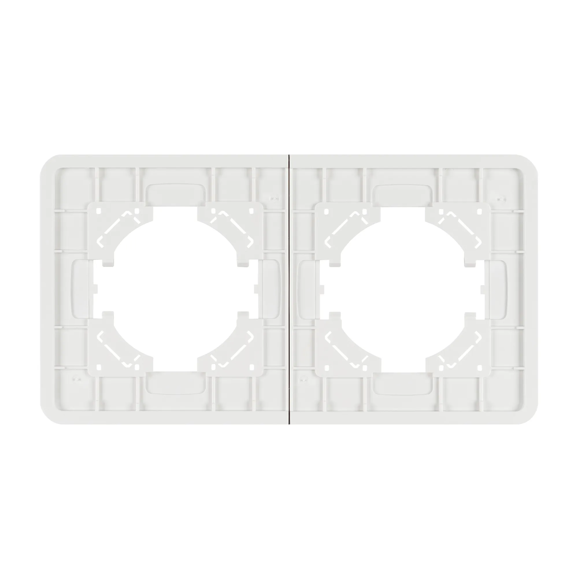 Рамка стеклянная на 2 поста, под встраиваемый механизм. Цвет - белый с Soft-Touch покрытием. Уровень герметичности IP20. Ориентация монтажа - горизонтальная (основным ориентиром служат посадочные выступы для накладки механизма).