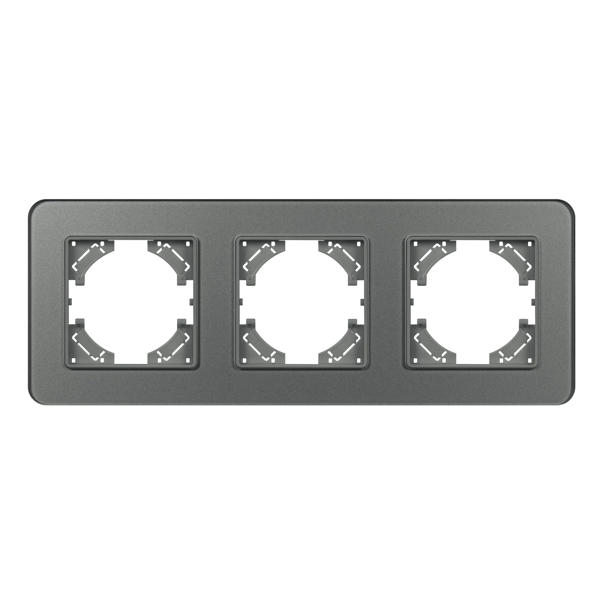 Рамка стеклянная на 3 поста, под встраиваемый механизм. Цвет - серый. Уровень герметичности IP20. Ориентация монтажа - горизонтальная (основным ориентиром служат посадочные выступы для накладки механизма).